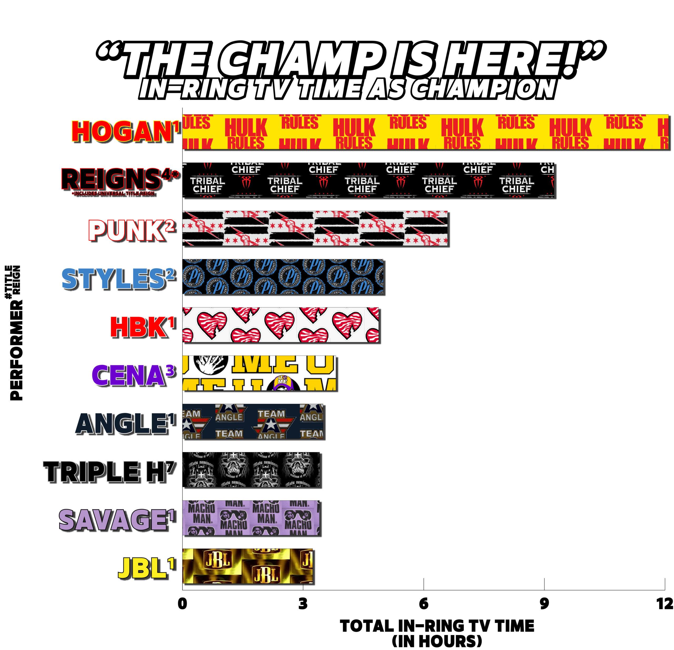 Reigns has spent a shocking amount of TV time in matches (combining the Universal and WWE reigns, it’s the second-most time as a champion in televised matches ever), so he seems dominant. But if the order in which he won the titles were reversed, this would just mean more.