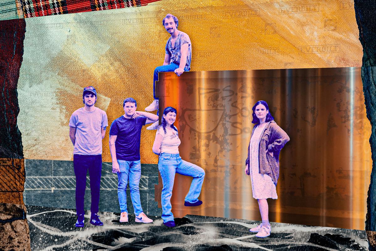 I know, I know—we’re less than a week into exhausting boygenius discourse around how much public performance of friendship should be considered an artistic quality. But it’s hard to deny that this stuff really does matter to an audience still starved for analog camaraderie and that it can be the basis for genuine, powerful songwriting. As far as what Wednesday thinks of the “good hang” allegations, “That’s one of my favorite compliments that we get,” Hartzman confirms. Throughout our time together, she gets interrupted as each member shares their favorite image from Rat Saw God. Lenderman likes when his leaps off a diving board are compared to a rusty can opener in “Formula One.” Chelmis is partial to the scene in “TV in the Gas Pump” in which he comes to in a Dollar General parking lot: “Xandy took mushrooms before a show in Nashville, and he was trying to microdose, but it was not a microdose,” Hartzman cracks.