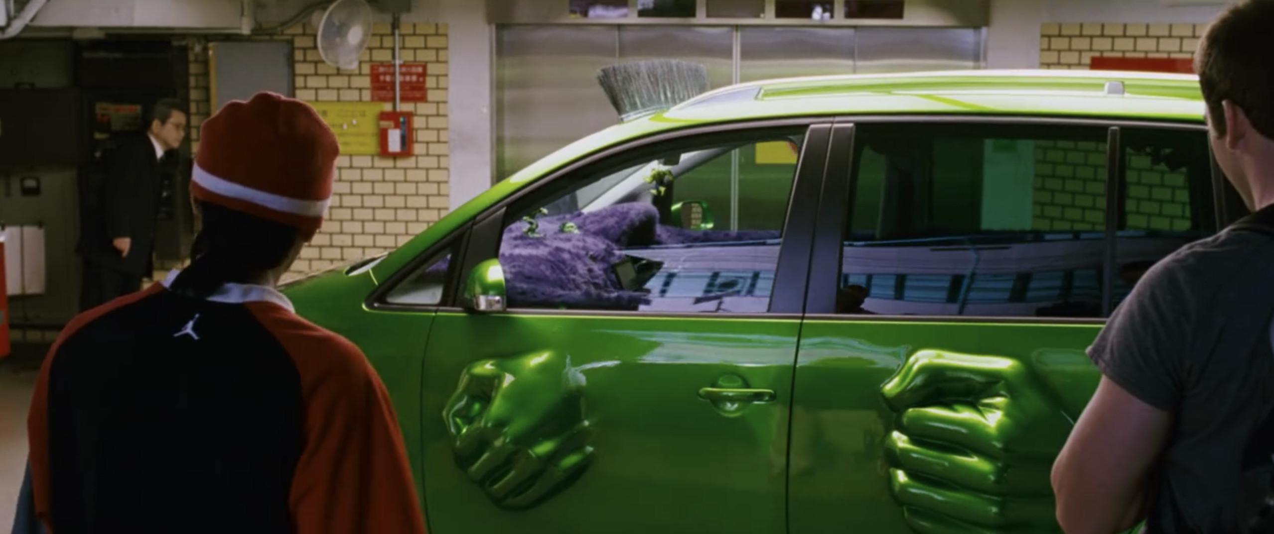 Sure, I can appreciate a hustle when I see one. In Tokyo Drift, Lil Bow Wow—or was he just Bow Wow by 2006? I could never keep up—is out there flipping laptops, cellphones, and Jordans that not even LeBron James could “get his hands on.” Who knows whether his inventory was actually high quality; the heavy implication is definitely not. But there’s nothing wrong with a little entrepreneurial spirit, and there’s a nice through line from stealing VCRs in the first film to selling old laptops. But on the other hand, Twinkie drives a Volkswagen Touran with lilac shag interiors and Hulk’s fists coming out the side of it.