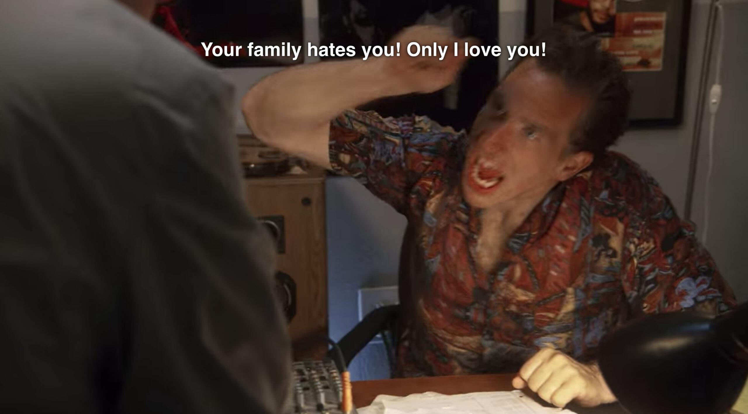When a record company exec tells the auditioning band he’s looking for something new and original—a direct parody of Walk the Line—frontman Billy (Rhys Coiro) shoots his shot with “The Day That Robert Palins Murdered Me.” Billy’s country crooning piques the exec’s interest, but then his oblivious bassist (Robinson) jumps in with his own lyrics—which to his credit are original. He shrieks about skeletons coming up from the ground to pull people’s hair (up, not out), with lines such as “The worms are their money / the bones are their dollars,” as well as my personal favorite, “They’ve never seen so much food as this / Underground there’s half as much food as this.” It’s utter nonsense, and it’s utterly delightful. —Levy-Rubinett