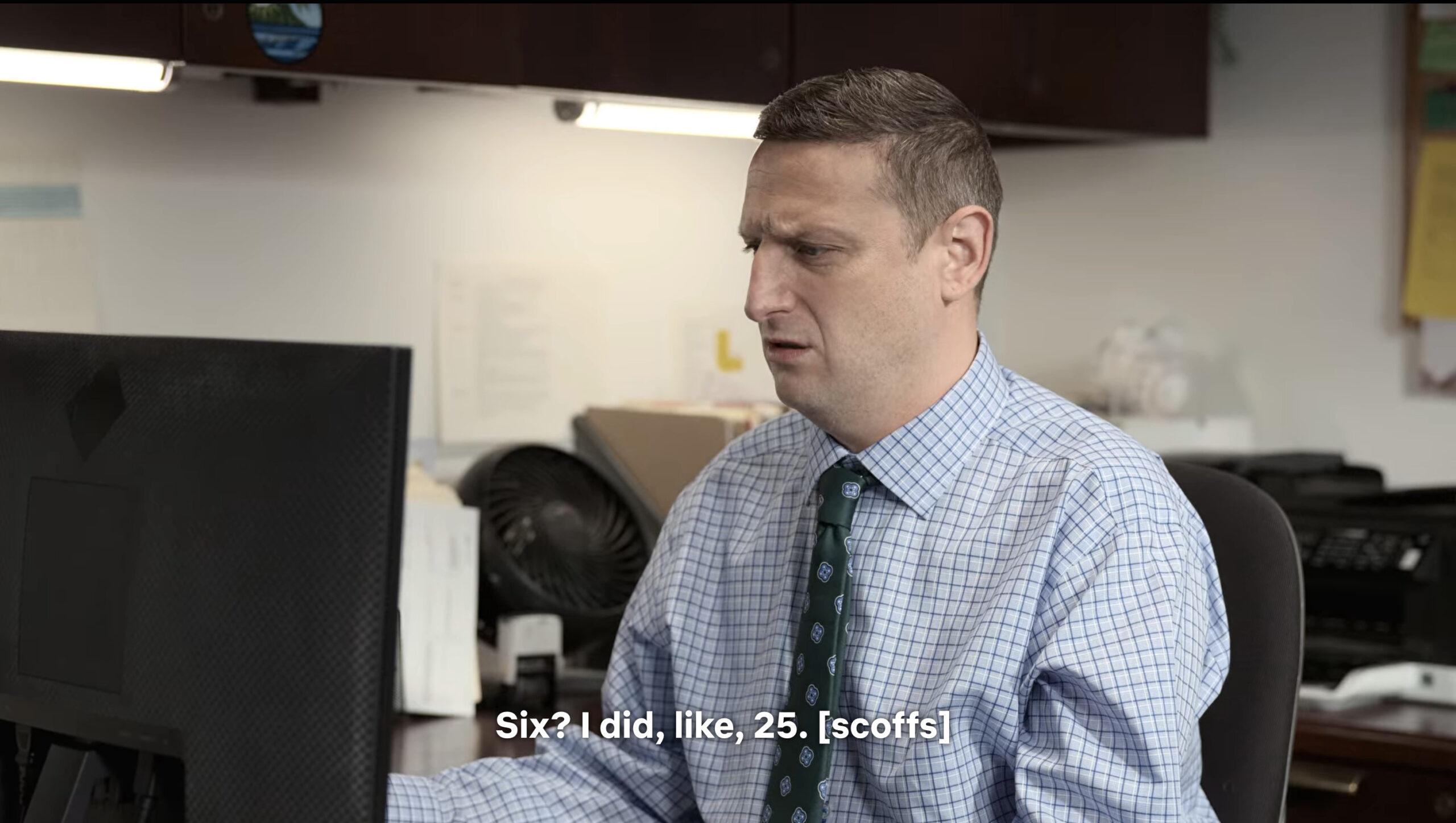 A poker night with the boys hits all the clichés as everyone takes turns making fun of their nagging wives over some beers. But after an offhand comment about how being married to his wife makes him want to drink more, Scott (a committed Paul Walter Hauser) immediately regrets what he said. The sketch then spirals into an unexpectedly earnest flashback about Scott’s wife supporting him when he gets cast as a mobster in a local theater production and all his lines keep getting stolen by an asshole named Jamie Taco (Jamie talks, like, super fast). With how many I Think You Should Leave sketches culminate in chaos and/or despair, there’s something genuinely sweet about Scott going full Wife Guy at poker night, which also happens to be a sleepover party for middle-aged men. Dudes rock—except for Jamie Taco, whose name I’ll never forget—but they should also say nicer things about their wives. —Surrey