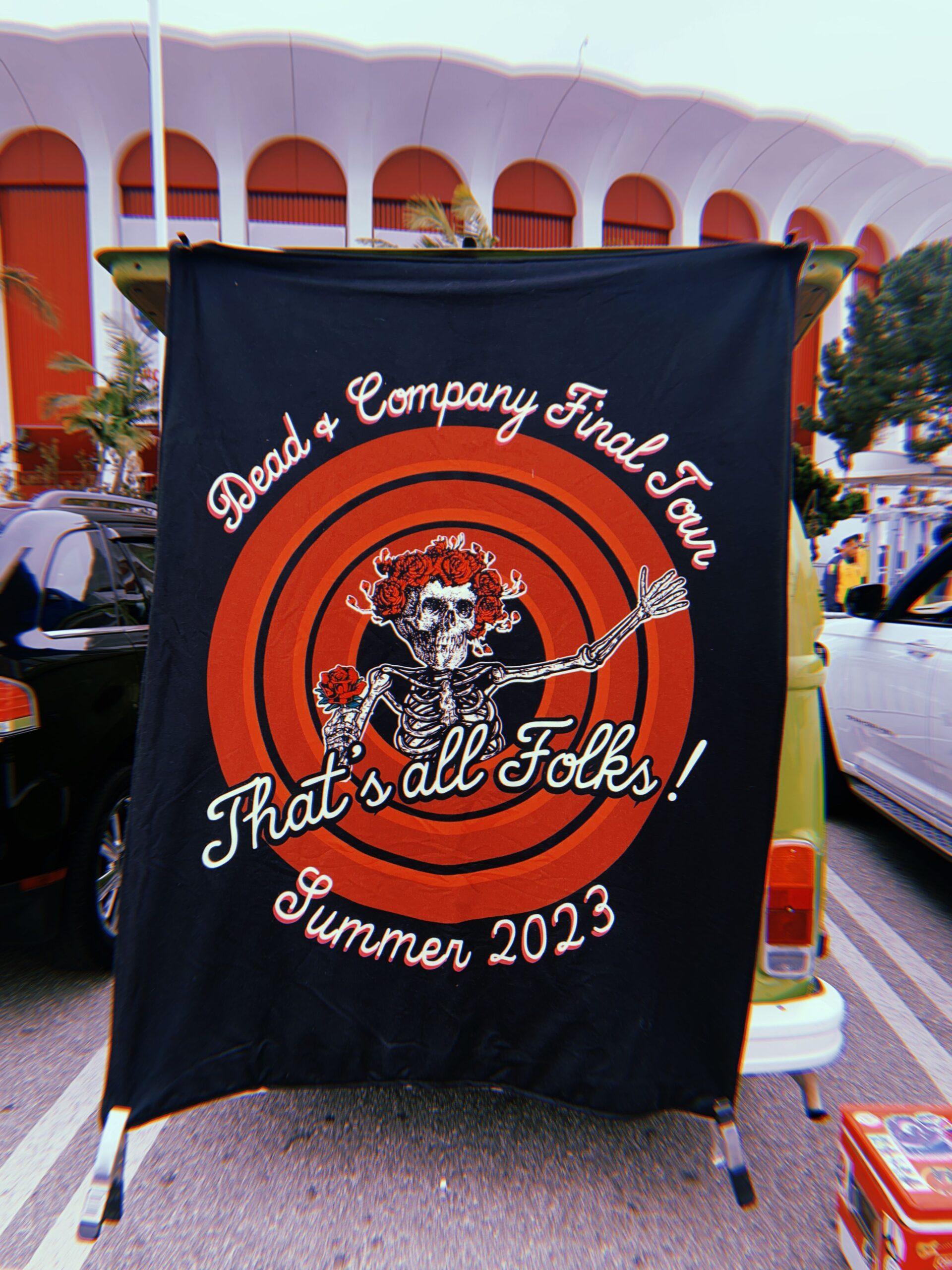 Anything worn onstage by Mayer gets a boost. In 2022, an official shirt designed by bootlegger Jeremy Dean with a dancing bear face and the word “California” in a straightforward script was sold out before the end of the first set at the first show of the tour. When I ask one vendor how many of his $80 sweatshirts (which have a BMW logo in the Stealie) he sold after John wore one in June, he demurs, telling me only, “A lot.” I ask another vendor whether he’s concerned the band will force him to stop selling his shirts, which violate the only enforced rule of vending by having the words “Dead and Company” on them. He laughs and tells me he’ll just text Mayer and have him sort it out.