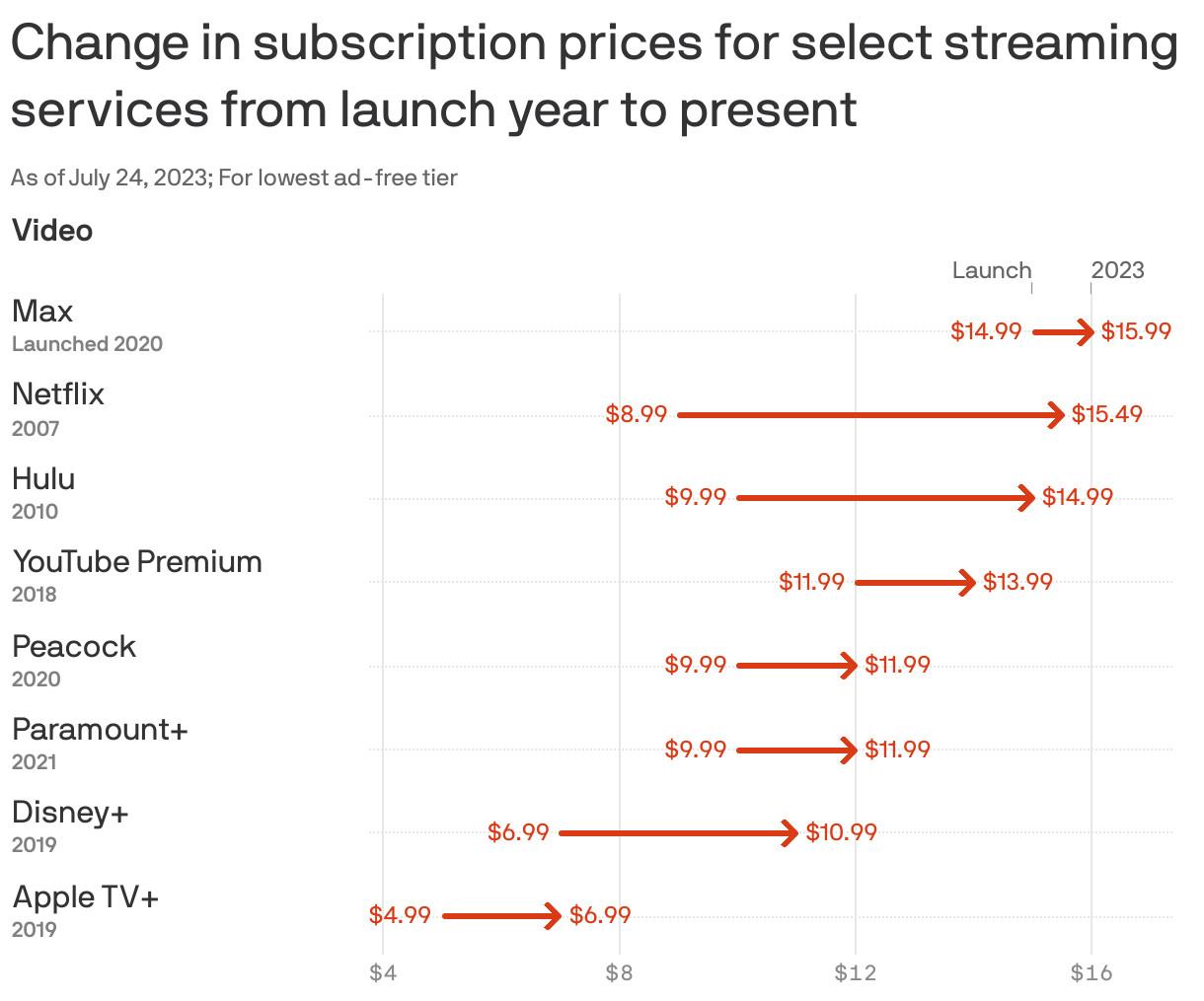 On the, um, plus side, Apple’s offerings are exclusive to its service. And even after a price hike late last year, its subscription price is still the lowest among major streaming services, as Axios documented last month.