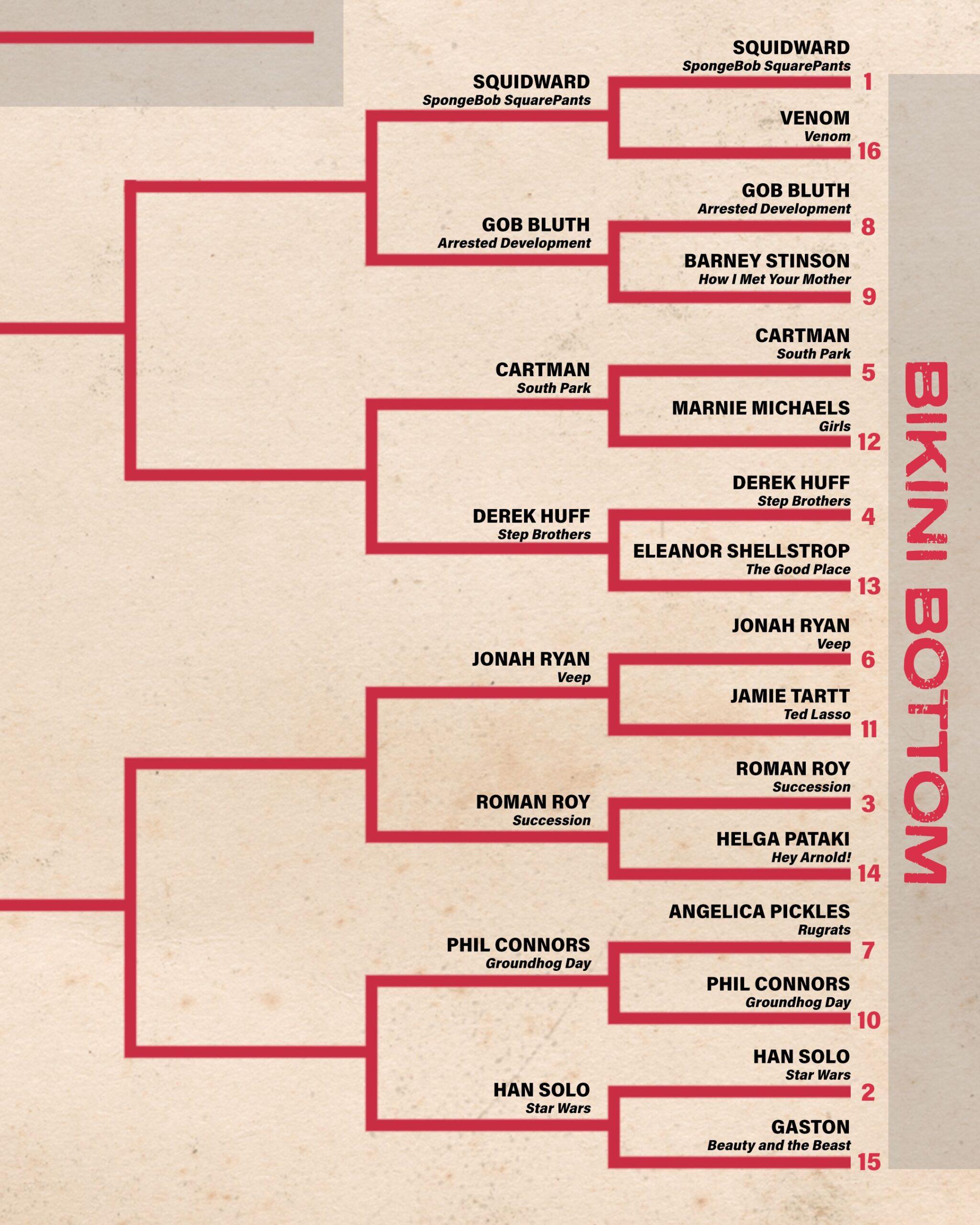 I don’t trust a single character in this region. Every one of them feels vulnerable. Most of them excelled in the first round, but now they’re all locked into battles against each other. (Derek Huff vs. Cartman and Roman Roy vs. Jonah Ryan are some true heavyweight matchups.) And even Han Solo—Han Solo—struggled somewhat to dispatch Beauty and the Beast’s Gaston. Who’s to say he’ll do any better in Round 2?!