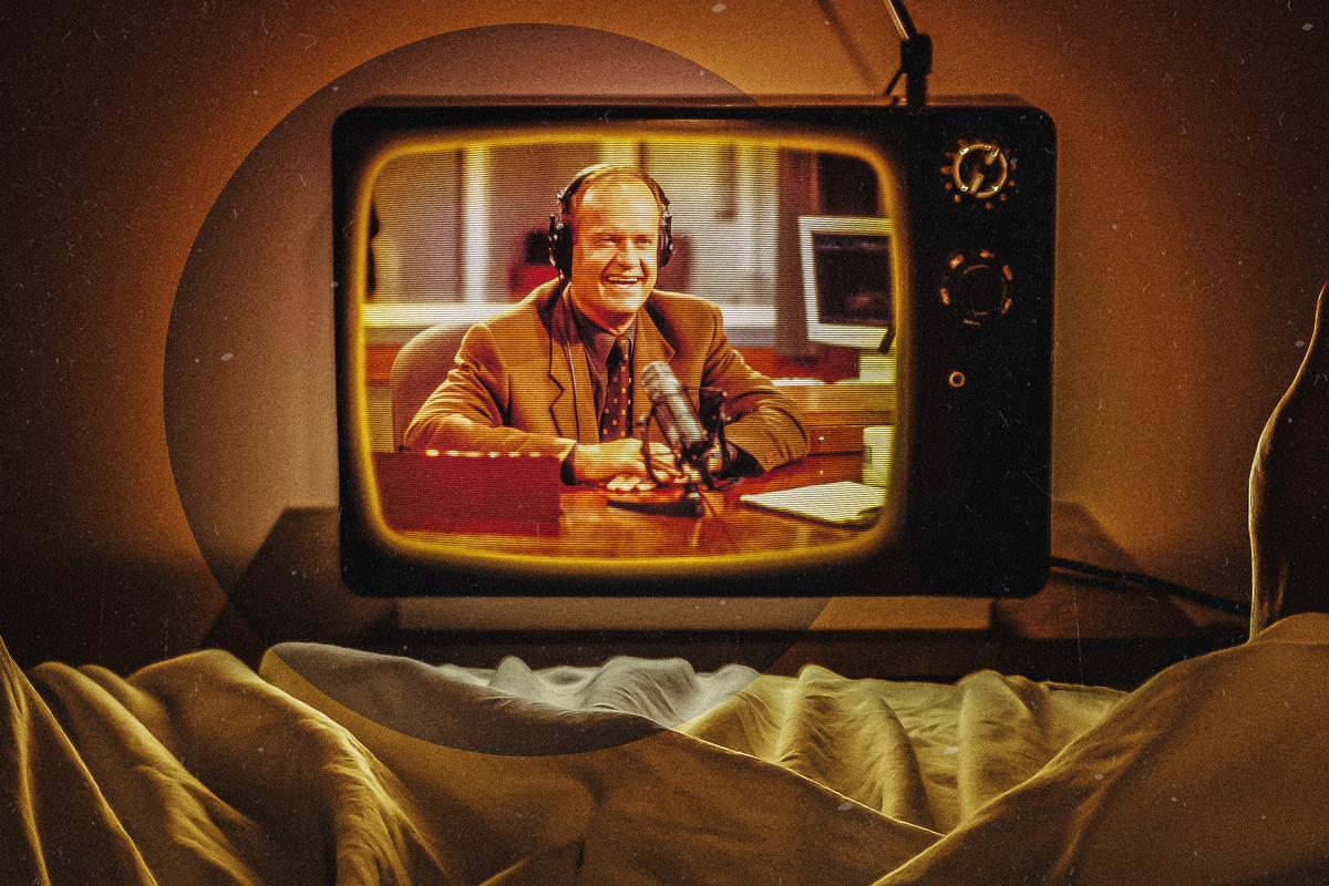 The Nulls are far from alone. Falling asleep to Frasier is a habit shared by many—so many, in fact, that the pastime boasts its own subreddit, r/Frasier_Sleepers, with more than 4,200 members dedicated to snoozing through the NBC sitcom, whose 11-season run concluded in 2004. Kate Moss has admitted to the practice, as have Best Coast’s Bethany Cosentino and filmmaker Kevin Smith, who hosted a Frasier podcast. Lili Loofbourow, now The Washington Post’s television critic, wrote a 2017 column titled “Why Frasier Is the Best Show to Sleep To,” citing the series’ jazzy credits, smooth banter, and low-stakes drama. “Frasier and Niles spar in a limpid, well-off pool,” Loofbourow wrote of the perpetually bickering Crane brothers. “Their neuroses are gentle and plush.”