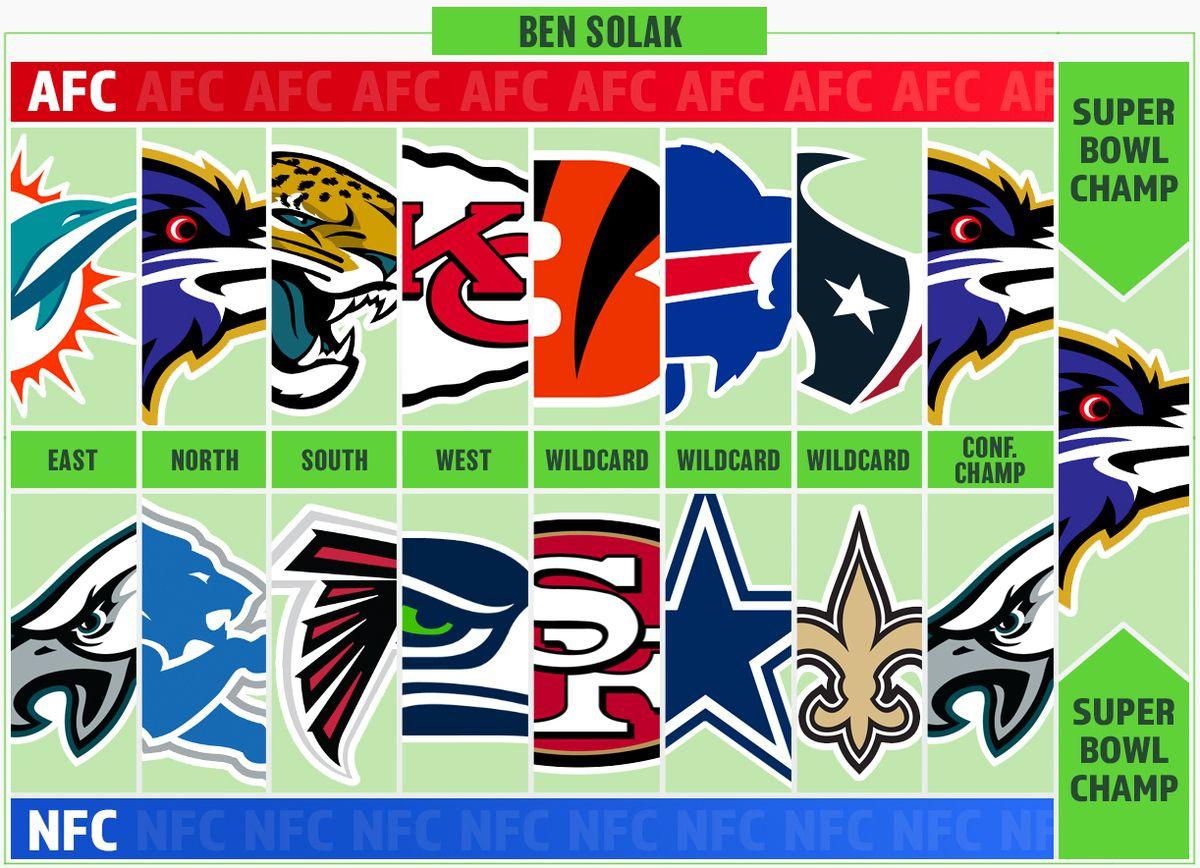 Ben Solak: The AFC is going to be an absolute bloodbath this year, and I can’t imagine feeling confident in any AFC champion pick at this time. Accordingly, I’ll pick the team I’ve enjoyed rooting for the most: That’s the Baltimore Ravens, who have finally built a functional passing game led by Jackson and paired that offense with a versatile, suffocating defense. Nobody has played better ball through nine weeks than the Ravens. Why not them?
