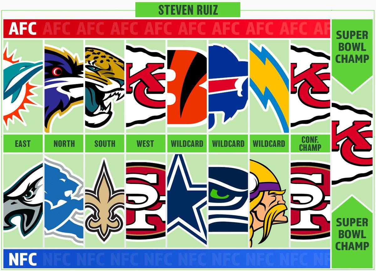 Steven Ruiz: I’m sticking with my preseason pick: Chiefs over 49ers in the Super Bowl. Both teams have issues—San Francisco can’t stop the run, and Kansas City is giving guys you’ve never heard of targets in crunch time—but that’s nothing a few minor schematic tweaks won’t fix. The 49ers will also need to get healthy for this prediction to work out. Whether the Chiefs can hold up their end is contingent on Patrick Mahomes and Andy Reid finding workarounds for the offense’s personnel weaknesses. I trust them to do so.