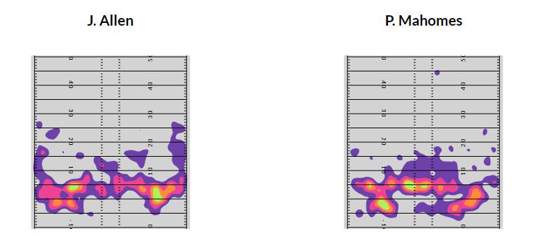 While there are some key stylistic differences between the two quarterbacks, the threat they pose to defenses is essentially the same: Both Mahomes and Allen force opponents to defend the entire width and length of the field and do so for an extended amount of time. Because of that, the responses they see from opposing defenses are also essentially the same.