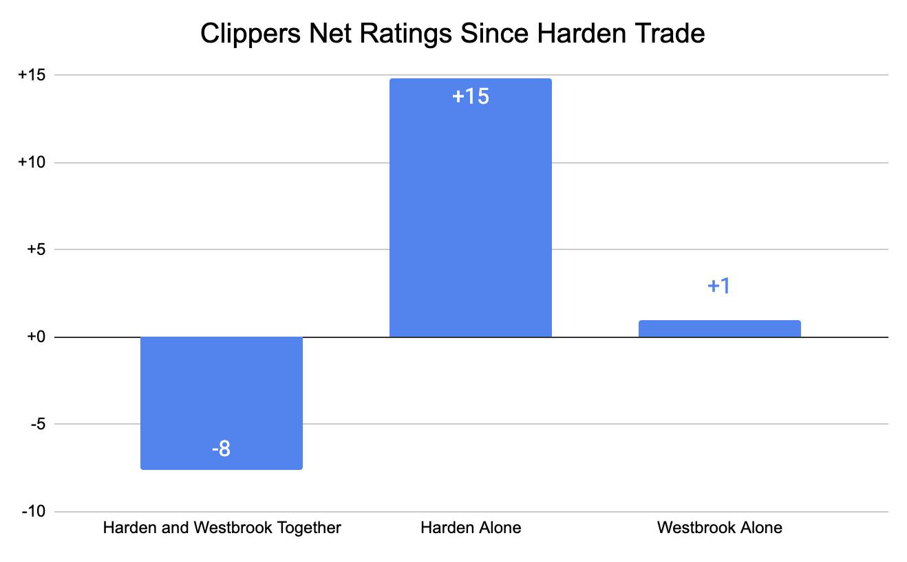 The new starting lineup is on fire. The Westbrook-led bench unit isn’t coughing up leads. And sure, there’s some shooting luck baked into the numbers in that graph (which come from PBP Stats), but the Clippers now look like a legitimate championship contender, as long as their stars stay healthy until spring.