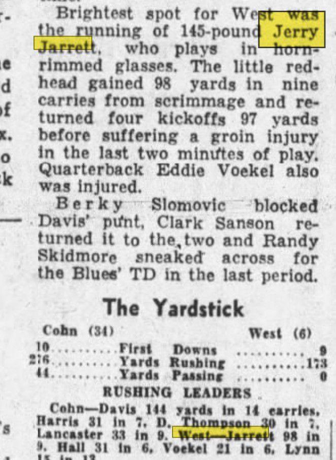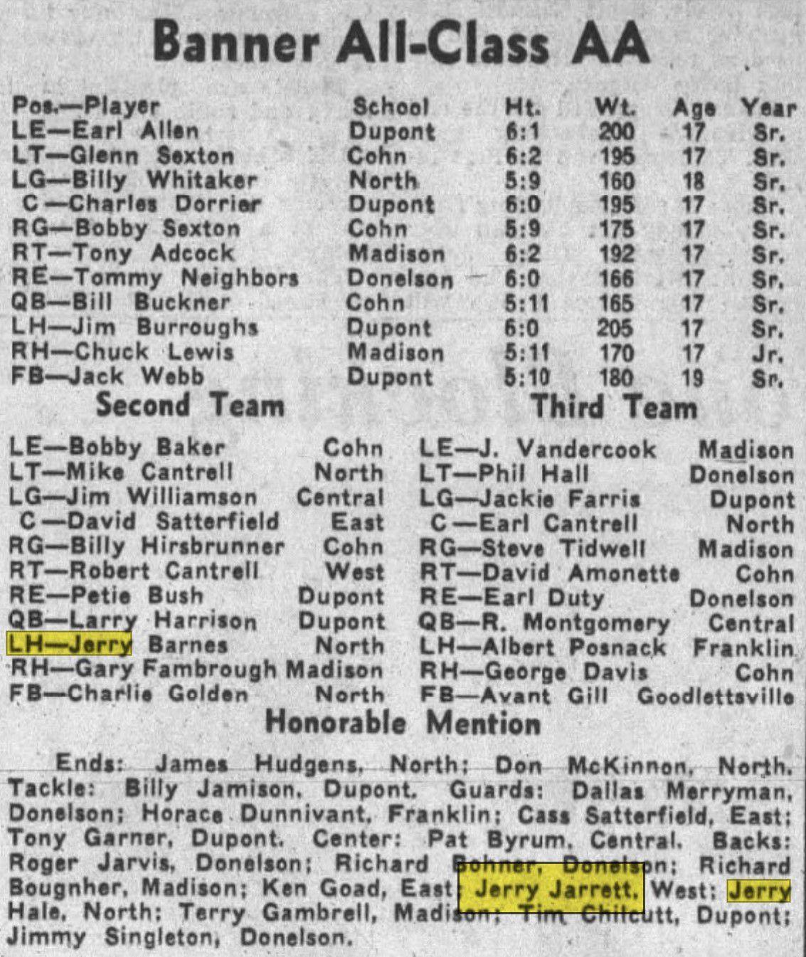 Despite working every weekend, Jarrett still found time to become an honorable-mention all-conference halfback for Nashville West High School at a mere 145 pounds, his name and gridiron accomplishments filling the sports pages of the Nashville Banner through 1959. He also found time to play baseball and basketball at West. It was this prodigious work ethic that initially drew Jarrett into the business world. He worked for the Murray Ohio Manufacturing Company, a bicycle and lawn equipment company, for several years and—at least according to wrestler Steve Keirn—played a role in inventing the extended “banana seat” popular on 1960s and 1970s bicycles (Cornette, who broke in as a manager under Jarrett, has also discussed this claim but could offer no independent verification of it).