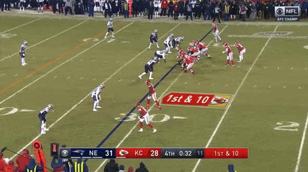 Fourth quarter, 0:32 on clock, Chiefs trail 31-28