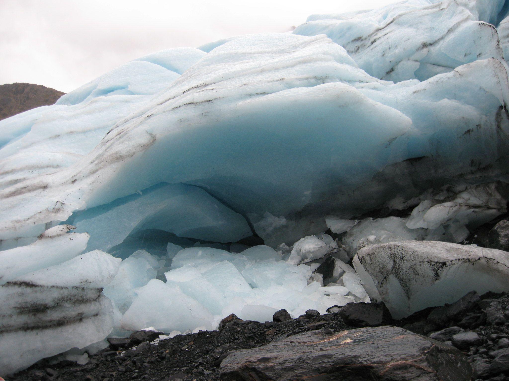 The glacier was huge—a thick, jagged layer of ice crawling over the mountain we had just hiked up. It looked still, but it was talking to us. We heard little cracking sounds in the distance, regular reminders that glaciers aren’t frozen in place, but rather a slow-moving river of ice.