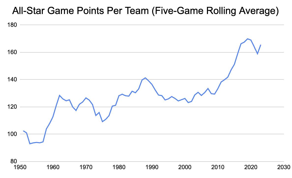 All-Star Game scoring inflation is apparent to anyone watching, and it’s even more obvious in a graph.