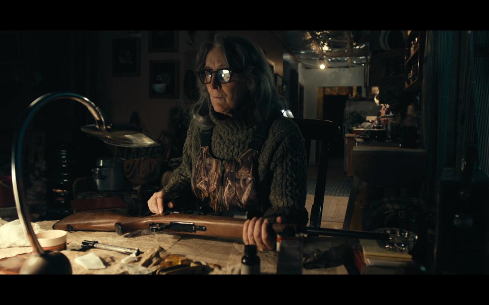 Her aesthetic? You know Audrey Gelman is taking notes. Her easy self-sufficiency? All these TikTok tradwives could never. (Though I’d sure click on a Reel where one of them gives tips on hiding bodies.) In this scene, Rose does her own take on a Queen Elizabeth high-low assemblage. Downy sweater plus camo bib overalls and you’re always ready to be a gracious host to anyone who comes to your door asking for sugar or a shovel.