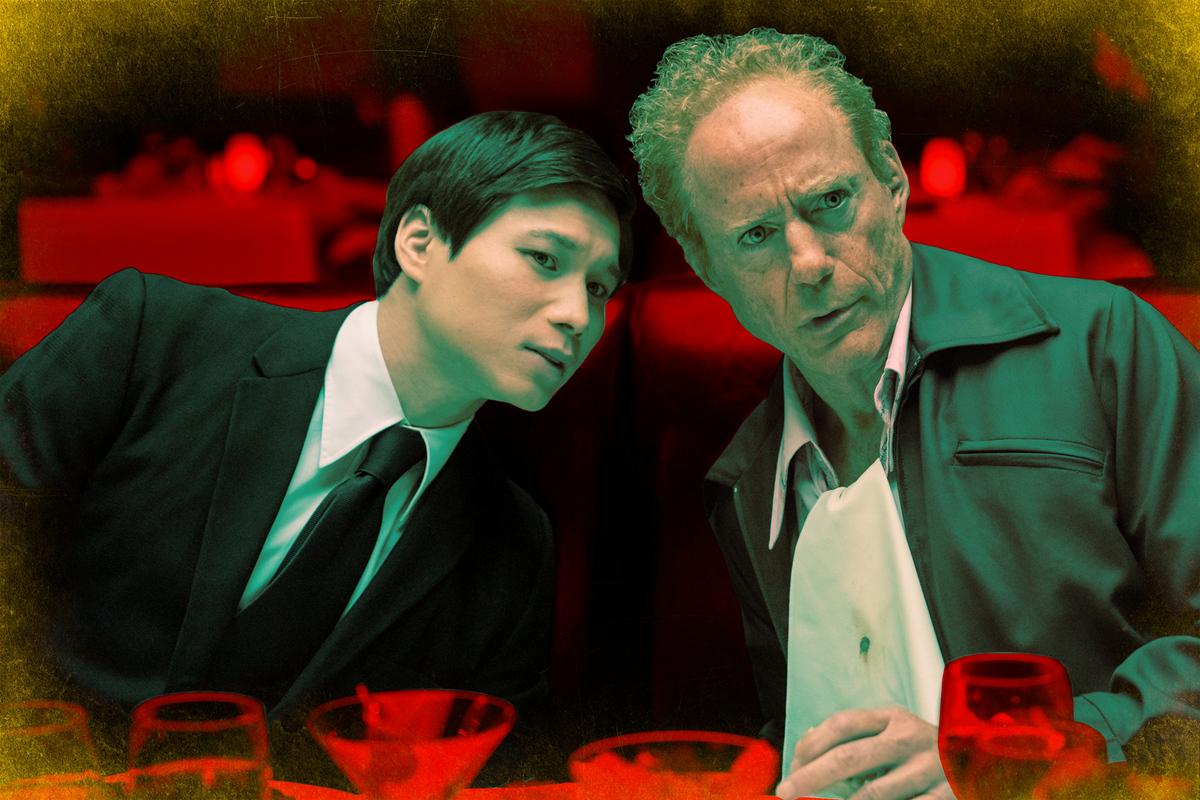 The A24 coproduction is led by showrunners Don McKellar and Park Chan-wook (Decision to Leave, Oldboy), the latter of whom helms the first three episodes before directors Fernando Meirelles (City of God, The Two Popes) and Marc Munden (Help, Utopia) finish off the remainder of the series. Park’s imprint is all over his three-episode block, with his distinct cinematic flair and particular brand of absurdist humor setting the tone for the show early and often. Some of the show’s funniest moments early on derive from the physical comedy of a drunken bar fight that occurs in the background of an urgent conversation, or the wide-angled portrayal of an assassination attempt gone awry. There’s a wonderful bit of interplay between Park’s and Nguyen’s works in this adaptation: Park’s twisted and spectacular Oldboy originally served as an influence for Nguyen’s novel—the author was inspired (and disturbed) by Park’s subversive revenge tale, released in 2003—and now the Korean filmmaker is one of the key creative visions bringing The Sympathizer to the screen.