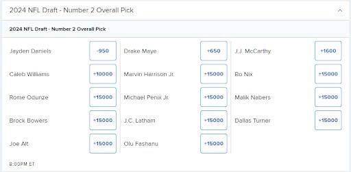 Look at the current odds on Fanduel Sportsbook for this year’s second pick. Jayden Daniels is a bigger favorite right now than he’s ever been on the book.