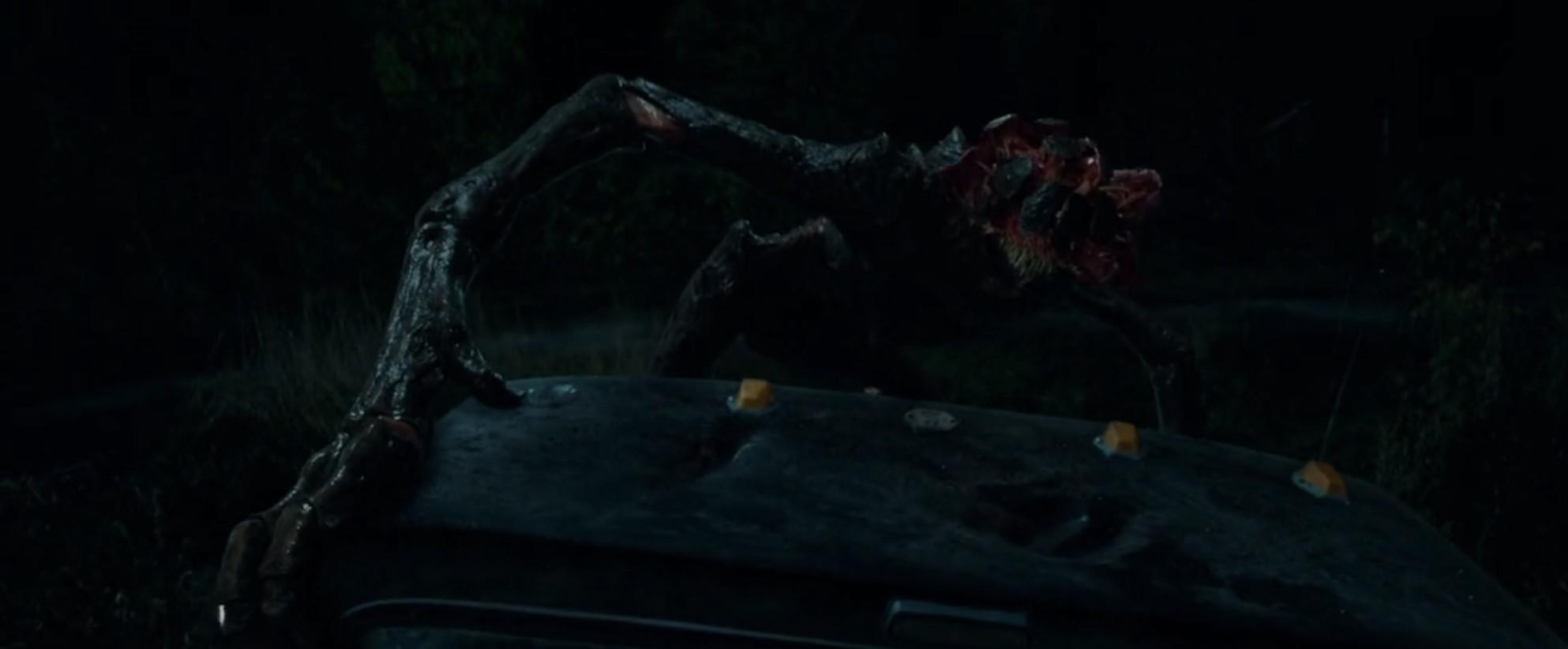 Close your eyes. A swarm of flying demon creatures whom you never see in the movie is forcing anyone who looks outside to kill themselves. The first on-screen death is a woman staring out a window at a hospital who starts viciously slamming her forehead into the glass.