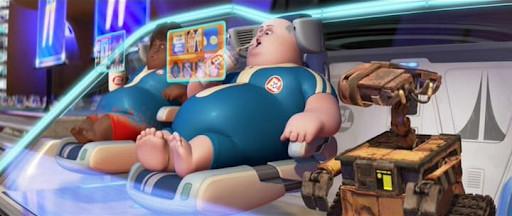 Don’t stop. Keep consuming. We know that WALL-E and EVE will force us to walk again soon, so let’s sloth it up as much as we can until they roll us off the ship. Diet starts on Monday. Or whenever we get to Earth. What day is it?