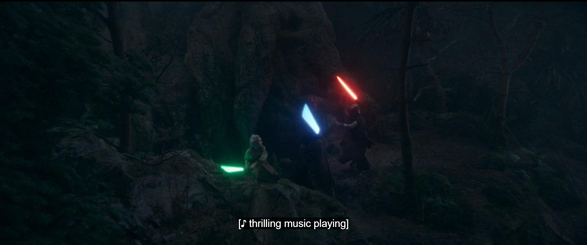 If there was ever any doubt (there wasn’t) that the score of the first six Star Wars movies made them unforgettable even when their nonmusical aspects slumped, the absence of a banger on this episode should highlight how essential Williams was. Then again, it’s a testament to the quality of the choreography (not a strength of, say, Ahsoka) that the action works as well as it does without equally compelling accompaniment. Heck, even Star Wars Kid would’ve seemed epic set to “Battle of the Heroes” or “Duel of the Fates.” (Well, no, maybe not.)