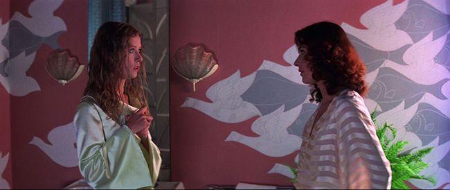 As in most giallo films, we don’t see who’s stabbing Pat—instead, we’re confronted with images of an anonymous knife-wielding hand appearing from off-screen just long enough to pierce flesh. The stabbing motions are all the more haunting when you consider how slow and playful they seem, culminating in a close-up of Pat’s exposed heart being sliced with the tip of the blade. This is all moments before she is thrust through a skylight and her neck catches on a noose, leaving her body to hang there as shards of glass fall into the central courtyard, nearly splitting the skull of Pat’s friend. It’s shocking how visually appealing the whole sequence is, considering the over-the-top violence that’s taking place. —Morrison