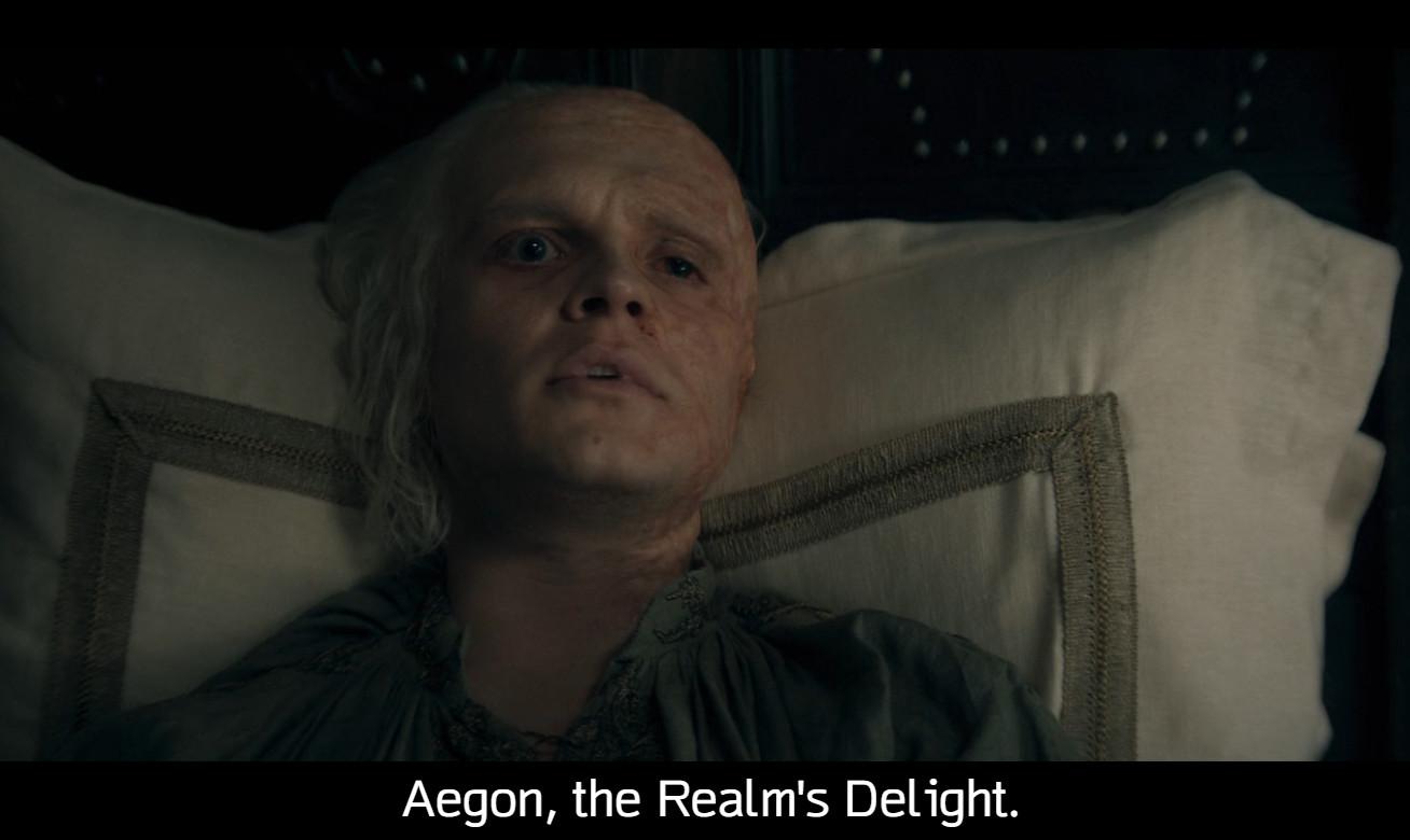 War is futile (especially if you’ve seen Season 8 of Game of Thrones), and given that Aegon’s penis apparently, ahem, “burst into flames like a sausage on a spit” when his brother lit him on fire, life is feeling that way to him now too. He may be on his way to spend Harrenhal’s gold in Essos while everyone fights it out back in Westeros, but Aegon definitely has some existential stuff to deal with—and Larys has to deal with Aegon.