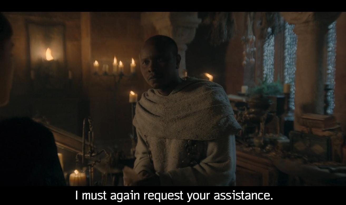 Actually, seemingly the only people who aren’t marching, sailing, or flying toward wartime are Aegon and Larys. For at least the next two days, the boys are on a road trip! Weird way to get to Essos, but the boys are on a road trip nonetheless, doing whatever the medieval version of slamming hot Cheetos and drinking fountain Coke is (pheasant and a flask of mead?). Of course, Aegon isn’t the best of road trip hangs at this point—he’s a little touch and go on that whole “will to live” thing. Remember a short while ago when he was laid up in bed, burnt to a crisp, and asking the question of the season?