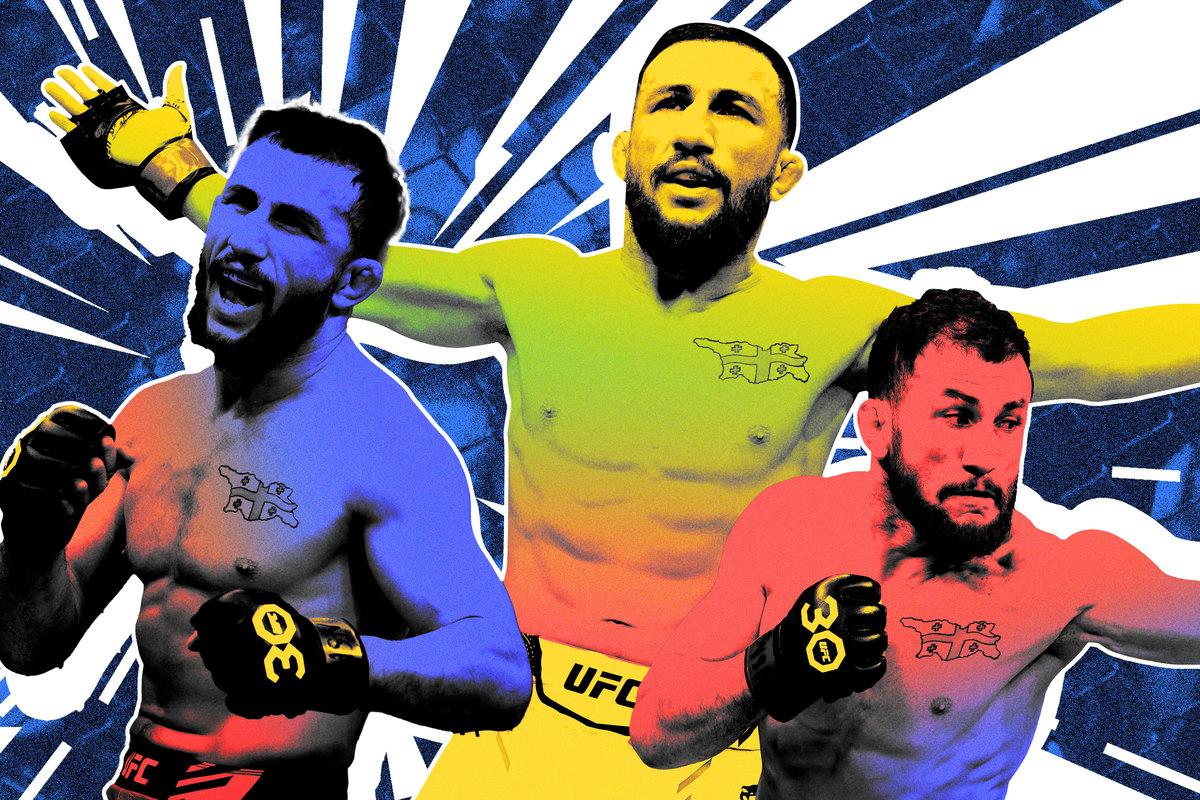 Yet anyone who has been watching knows it’s a fool’s game to overlook the relatively unsung Dvalishvili, a Georgian fighter who moved to New York at 21 years old to pursue a career in MMA. Merab is the polar opposite of O’Malley, standing 5-foot-6 on his tippy-toes, but he has proved he can wrestle a man into a real-time existential crisis. He is known as “the Machine” for a reason—he is super quick, as he demonstrated in his bout with former champion José Aldo, and he turns into a Tasmanian devil in scrambles. He sets a pace that defies all rules and conventions. While most fighters fade down the stretch, Merab only gets stronger. He’s a demon in the clinch and attacks the lead leg with relentless cardio.