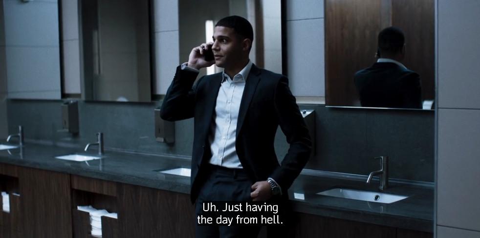 Whether they’re in a bathroom or on a train or at a party, most Pierpoint employees are freakin’ yappers, leaking information everywhere they go. But when you’re a generationally shady dude like Henry, raised in a family that trades in secrets, you get good at knowing when and how to keep things quiet. To watch Henry stride around a men’s room and actually check every stall for errant eavesdroppers before getting into a loud conversation about his personal-professional life is to see that skill in action. As opposed to …