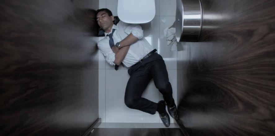 Like so many generations of first-year bankers before him, the ambitious character Hari is shown pulling an all-nighter at the office. He pops narcolepsy meds to avoid nodding off, fiddles with org charts in PowerPoint—“make sure the font’s Helvetica 12 or the MD will freak,” someone commands him—and then retreats to the bathroom floor for a pathetic 2 a.m. power nap. (Smart life hack to use the ubiquitous Micro Puff vest as a pillow, I guess.) It’s a beautiful overhead shot, but the sound of that iPhone alarm should be illegal!!