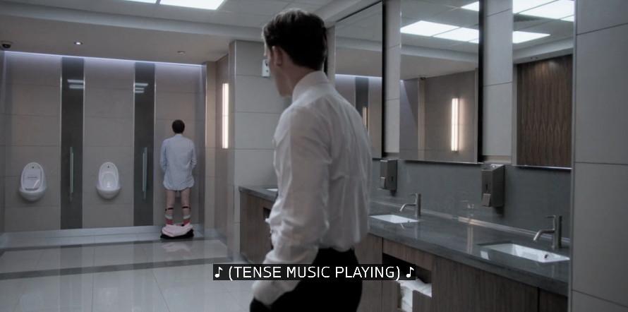 The Most Bathroom Scene in Industry, the only one with 6/8 WASHROOM points, is … that time those three dudes took that weird drug in a Pierpoint stall while an annoyed Lord idled nearby. (It wasn’t just Robert who had a weird night after that: there was also Greg, who bugged out and launched himself face-first into a glass partition, and then did it again and again.) That episode is part of The Most Bathroom Season of Industry, Season 1, which had at least 20 scenes set in the commode.