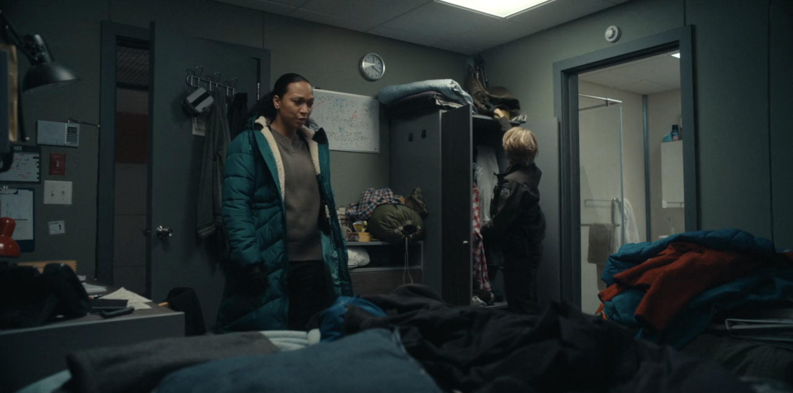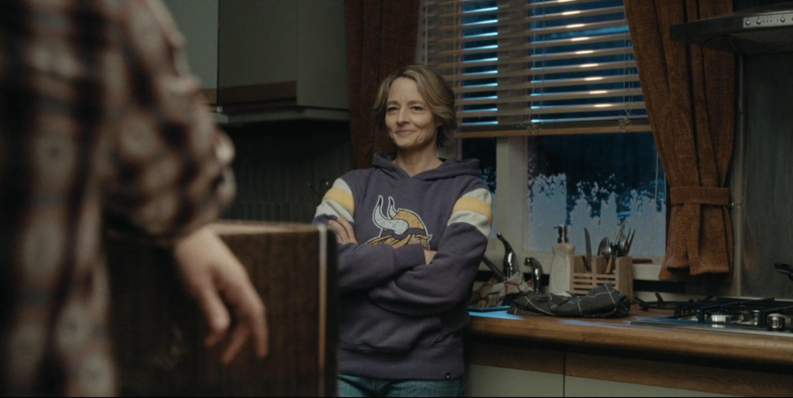What we do know is that Liz Danvers (Jodie Foster) is already deep in her bag. She and Hank Prior (John Hawkes) arrive at the empty Tsalal Arctic Research Station to assess the scene after a delivery driver notifies the police in Ennis, Alaska, about a severed tongue on the floor. Hank’s son and Danvers’s protégé, Pete (Finn Bennett), is also there, already in the midst of compiling research. Danvers is the only one of the three who can manage to shut off an on-loop DVD of Ferris Bueller’s Day Off. She’s also the only one able to tell that the tongue on the floor is at least two days old and that it belongs to a Native woman, recognizable by the marks left by a fishing wire. Danvers also calls out the odor of the wet clothes in the washer; she knows the syrupy mayo on a leftover sandwich—not the cold cuts themselves—is a key piece of evidence. It all signals that the station has been empty for at least two days.