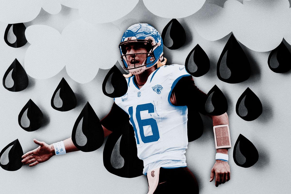 His 46.4 percent completion rate, 145 yards, and three sacks are the worst he’s had in the first four weeks of a season since his rookie year. Take last week’s loss to Houston, when Lawrence was faced with a blitz in the same part of the field as the Buffalo play last season. This time, the Texans are playing man coverage on the back end. Lawrence immediately finds an easy answer to beat the rush: a one-on-one opportunity for rookie receiver Brian Thomas Jr. Jacksonville’s offensive line picks up the extra rushers and the pocket is clean, but Lawrence sails the pass over Thomas’s head and out of bounds—the kind of inaccuracy that football fans ridicule less esteemed quarterbacks about.