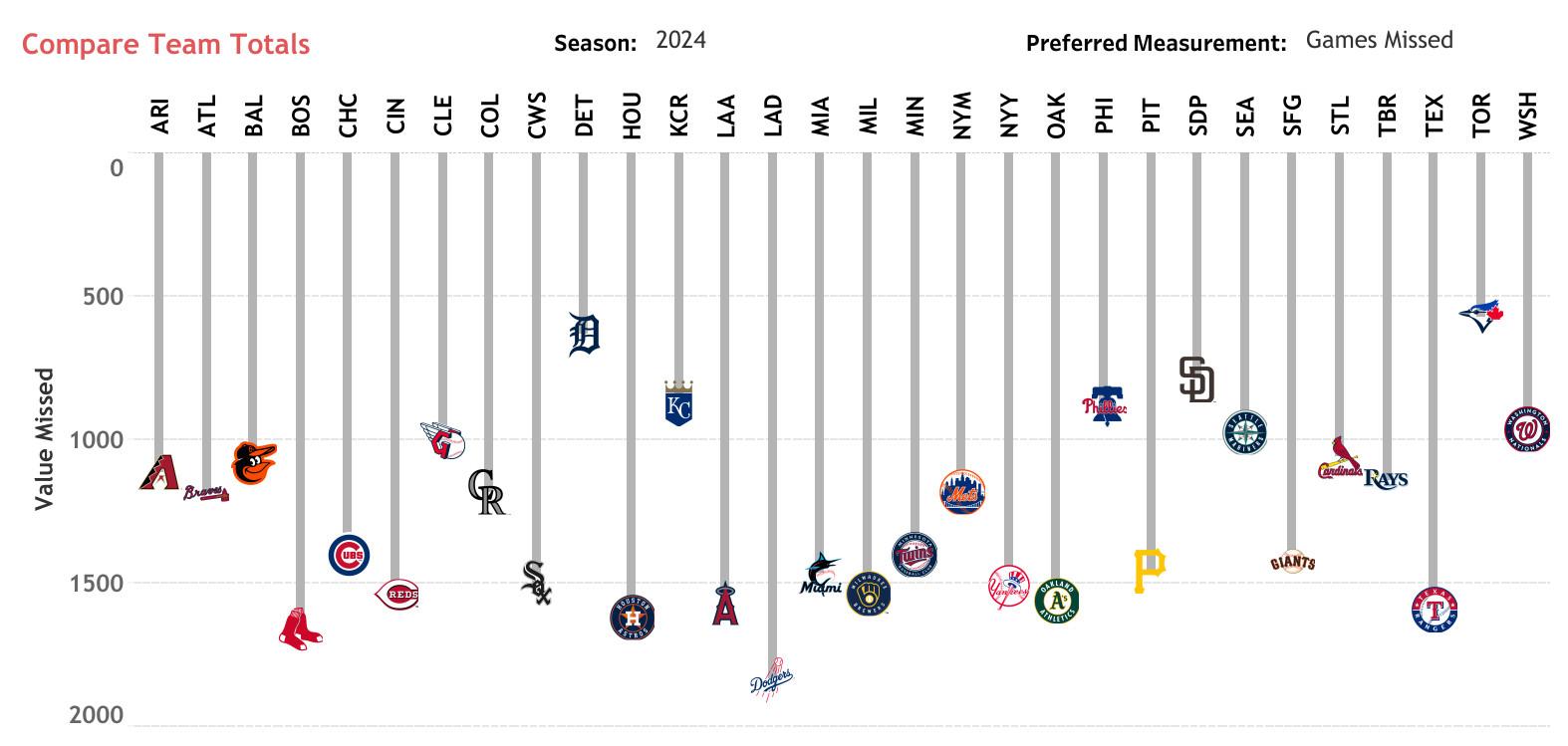 The Dodgers, meanwhile, went from losing the second-most projected wins to … losing the second-most projected wins again. L.A. led the majors in player games missed on IL stints.