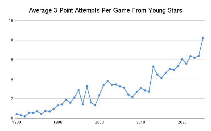 For a while, it seemed like the 3-point revolution had leveled off. Early in 2024-25, however, it’s clear that the deep ball is on the rise again. And this time, it’s the best young players who are exhibiting the greatest increases.