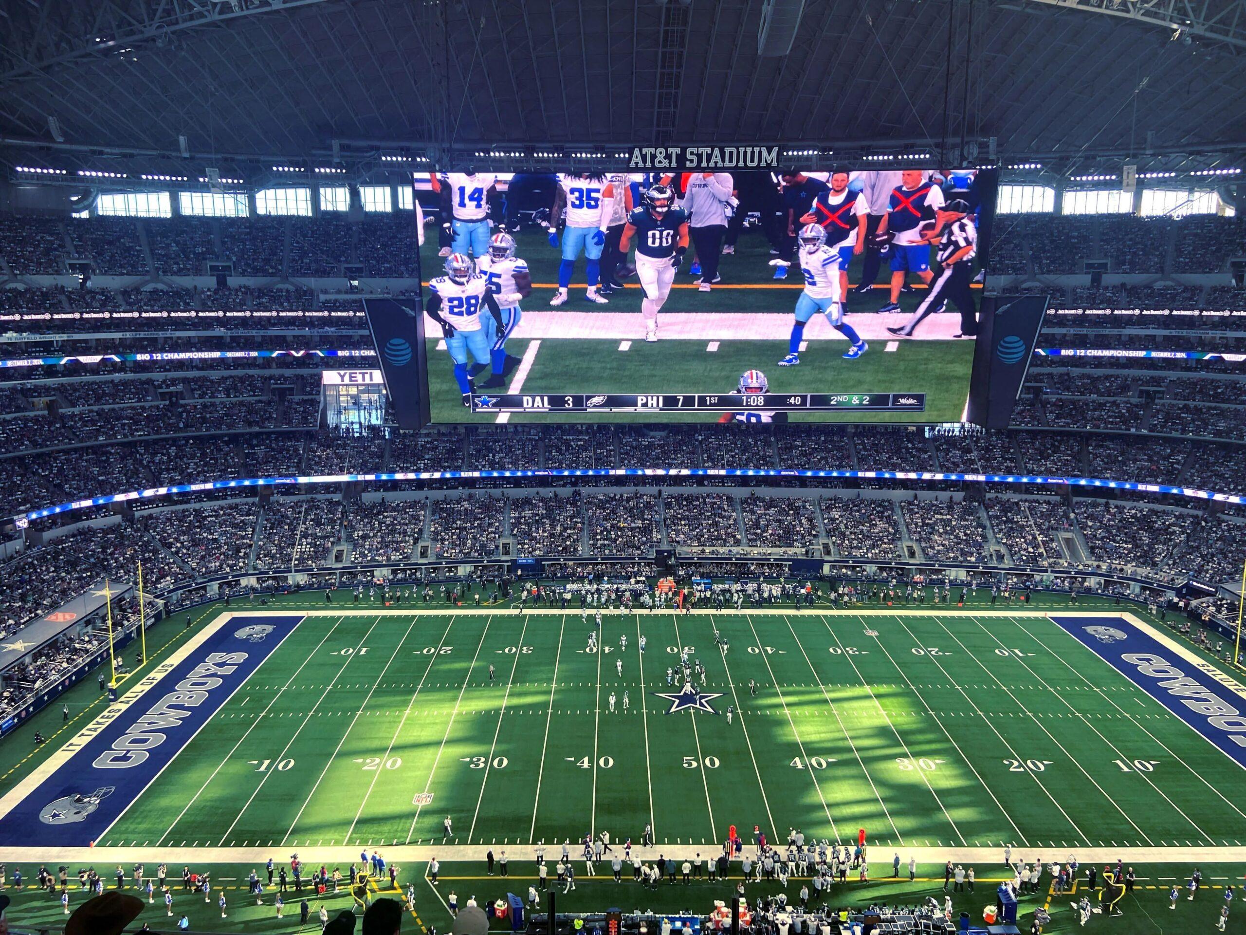 By halftime I was up in the press box. Through two quarters, CeeDee Lamb had 94 receiving yards, and the team was up 14-9. Lamb would notch only 4 more yards and Dallas would score only two field goals for the rest of the game. They ultimately held on, 20-15, in a slog of a contest, but a substantial number of fans weren’t there to see the finale. People had already begun heading for the exits before the end of the fourth quarter. Even in victory, they’d seen enough. Some were drunk, many were sober, and, only a month into the season, almost all were tired.
