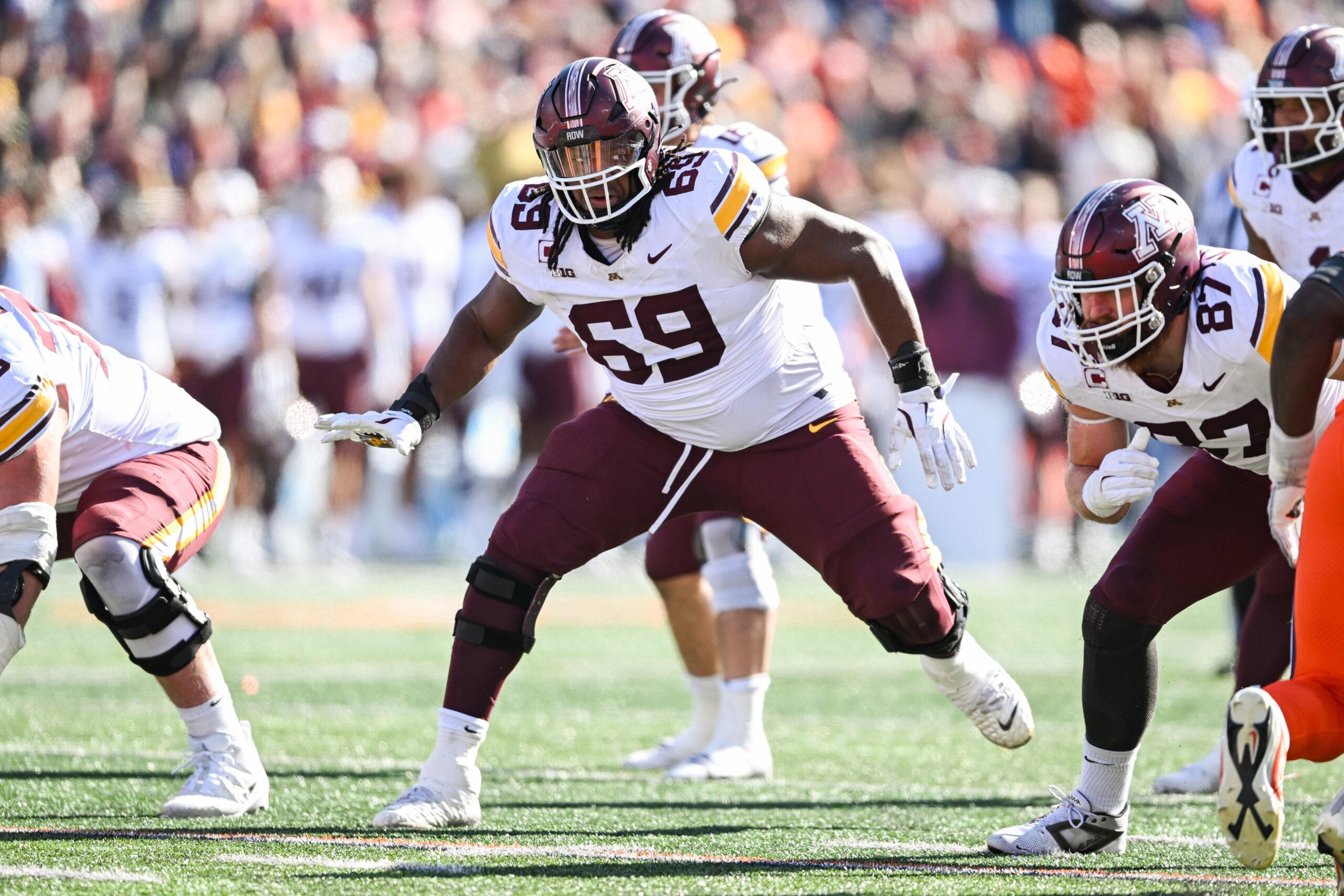 The Vikings can add some mass to their offensive line with Savaiinaea, a big, wide-bodied blocker. The Arizona lineman boasts quick feet, good balance, and plenty of versatility and has experience lining up at both guard and tackle. He projects best as an interior lineman in the pros, and that’s where he’d help most on the Vikings line.