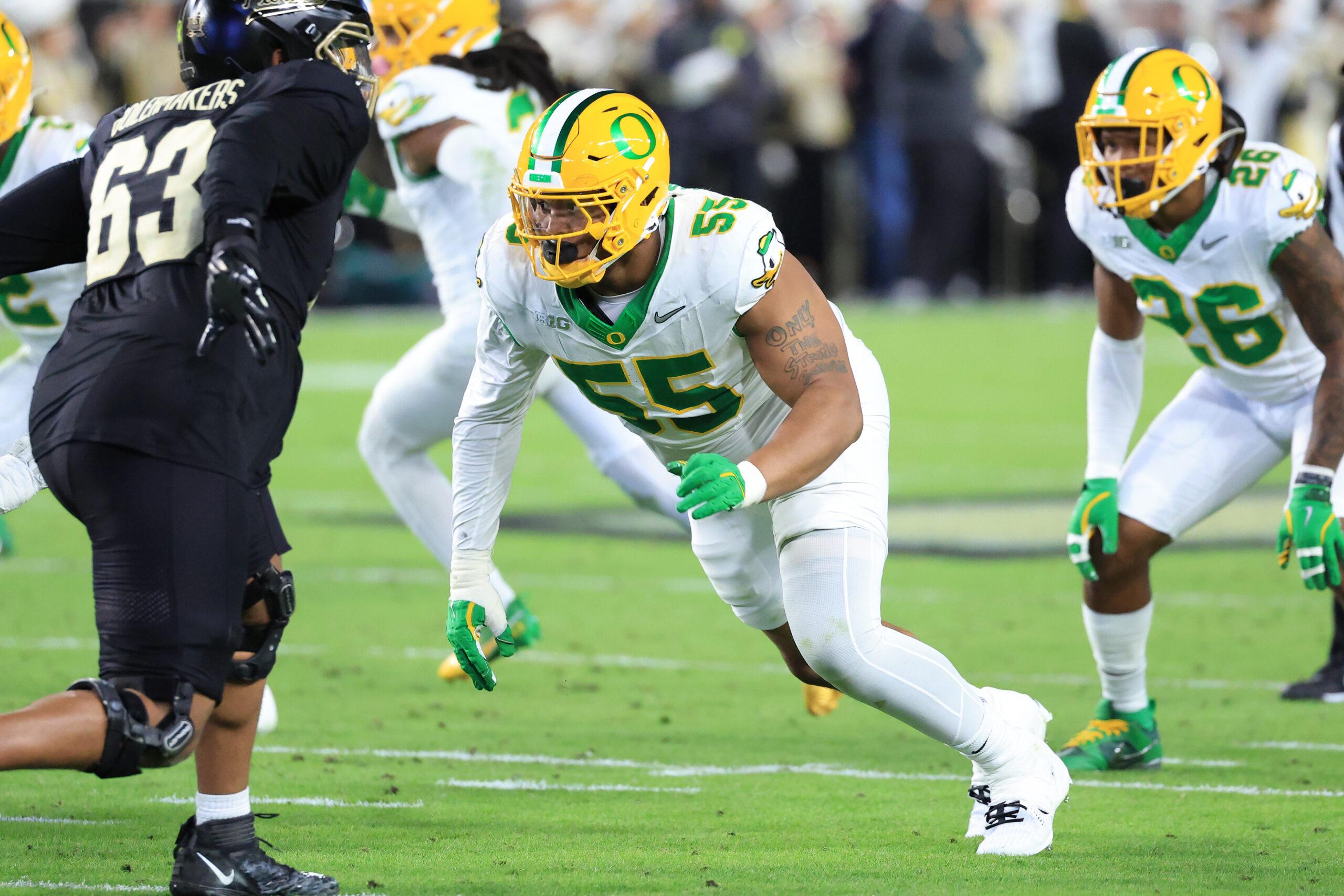 Outside of Ed Oliver and DeWayne Carter, the Bills interior defensive line group is getting up there in age, with DaQuan Jones, Austin Johnson, Quinton Jefferson, and Jordan Phillips all now north of 30 years old. With that in mind, the Bills can add some youth to that rotation with Harmon, a powerful and long defender out of Oregon. A transfer from Michigan State, he has shown the versatility to line up and penetrate the pocket from multiple angles, and he’s stout enough to be an anchor who can plug gaps in the run game.