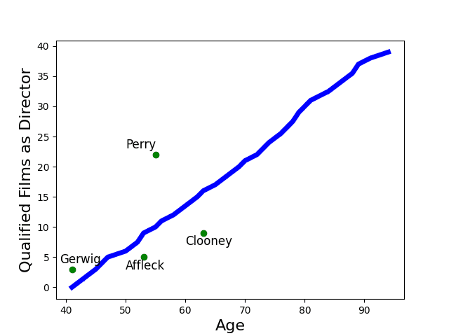 In other words, we may have entered a golden age of the Hollywood double threat. That doesn’t mean that one of today’s younger actor-directors will one day equal Eastwood’s stats, but it does suggest that there are plenty of people to whom he could pass the torch. John Krasinski has four qualified director roles and 13 qualified actor roles. At the same age, Eastwood was at four and 17, respectively. Ben Affleck is at five director roles and 42 actor roles, compared to nine and 26 at the same age for Eastwood. Greta Gerwig, at three and 13, is ahead of Eastwood’s one and 12 (and she also boasts the highest average rating of anyone in our sample with three or more director credits). Tyler Perry lacks the sterling reviews, but at age 55, he’s well ahead of Eastwood’s pace as a director.