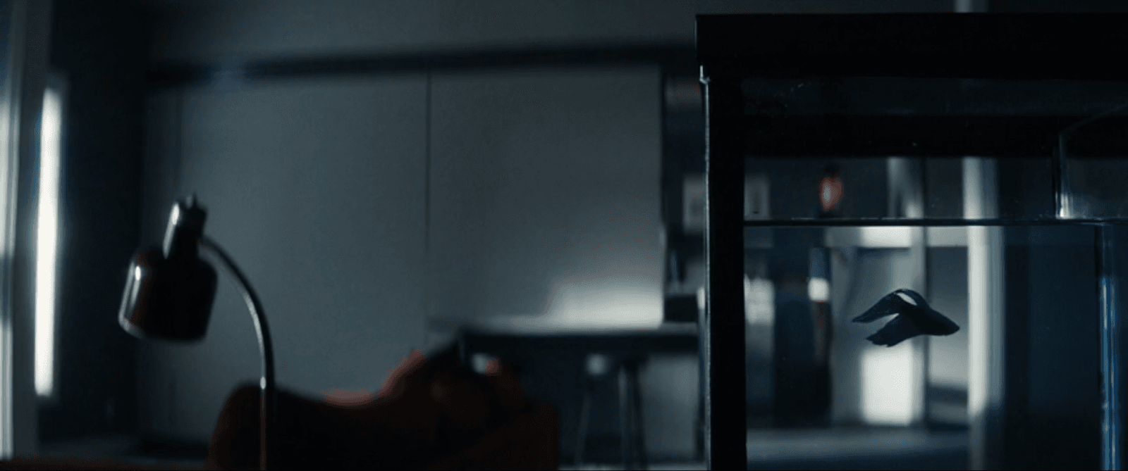 Throughout the series, Severance has featured all kinds of shots or production designs that symbolize or allude to the show’s theme of duality, and its core concept of splitting oneself in two. One of the most prominent examples came in the series premiere, when we saw Mark’s fish tank, which features one red fish and one blue fish, separated by a border. (Sounds a bit like the pills in The Matrix, doesn’t it?) But near the beginning of Episode 6, we get a different view of Mark’s fish tank as he experiences a crossover memory while standing in the kitchens at the office and in his home. And this time, only the blue fish is visible:
