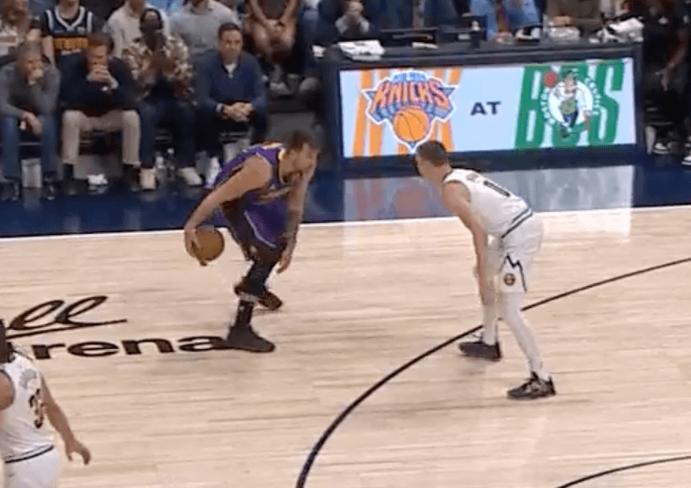 That threat sets the stage for the choreography that defines Doncic’s signature move. Just ask Christian Braun, who found out the hard way on Saturday night. Near the end of the first half, Doncic had the ball in his happy place, deep along the left wing. He crouched into form, head up, pounding the rock into the Ball Arena decal and reading Braun’s balance like a prizefighter. All it took was a little right-footed jab step to get Braun to open up his stance; as soon as Doncic saw that, it was over.