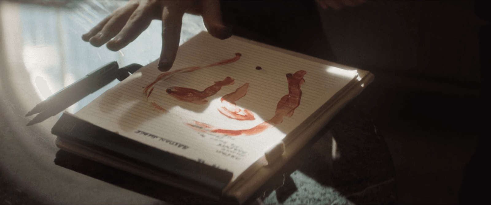 Bastion grows increasingly violent and menacing, and the final straw comes when his nose starts bleeding. Instead of wiping the blood away, he uses it to create a quick finger painting. And let’s be honest, it isn’t Muse’s best work: