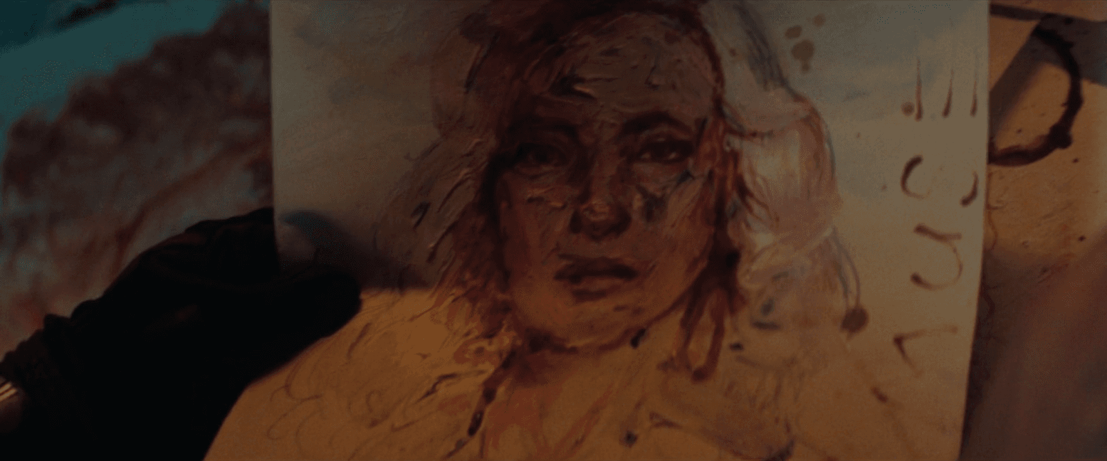 As deeply silly as this painting is within the context of this solemn moment, it serves as Bastion’s way of revealing himself to be Muse—and Heather understands immediately. She tries to escape, but Bastion throws her head into the wall, knocking her out as he prepares to make her his next victim.
