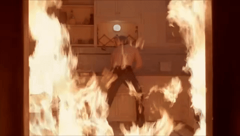 Another situation where death is almost instantaneous, but it’s everything leading up to Evan getting his face impaled by a ladder in Final Destination 2 that would make your final moments unbelievably stressful. My guy comes back to his apartment and [deep breath] heats up leftovers in a microwave oven, unaware that a refrigerator magnet fell into the box; gets his hand stuck in the garbage disposal trying to fetch a ring; and sets his kitchen on fire while frying mozzarella sticks. He’s basically living out that Community meme: