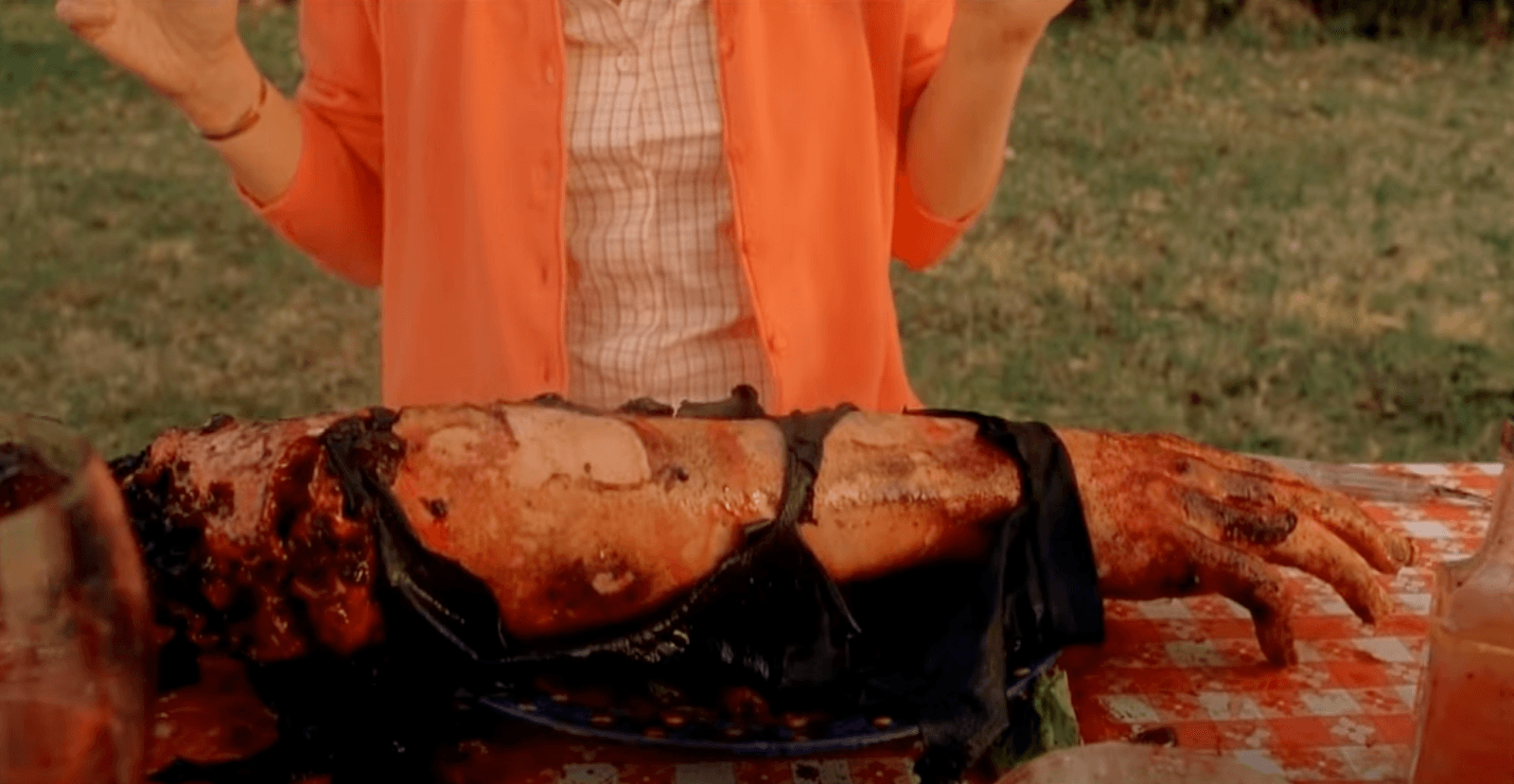 The Final Destination franchise is willing to not only kill a child but also make the poor kid’s death a punch line. At the end of Final Destination 2, teenager Brian is having a barbecue with his family, as well as survivors Kimberly and Thomas. When there’s an offhand mention of Brian’s near-death experience earlier in the movie—the type of incident that puts you on Death’s hit list—it’s too late to save him. The propane tank from the grill explodes, sending Brian’s severed arm onto his mother’s plate: