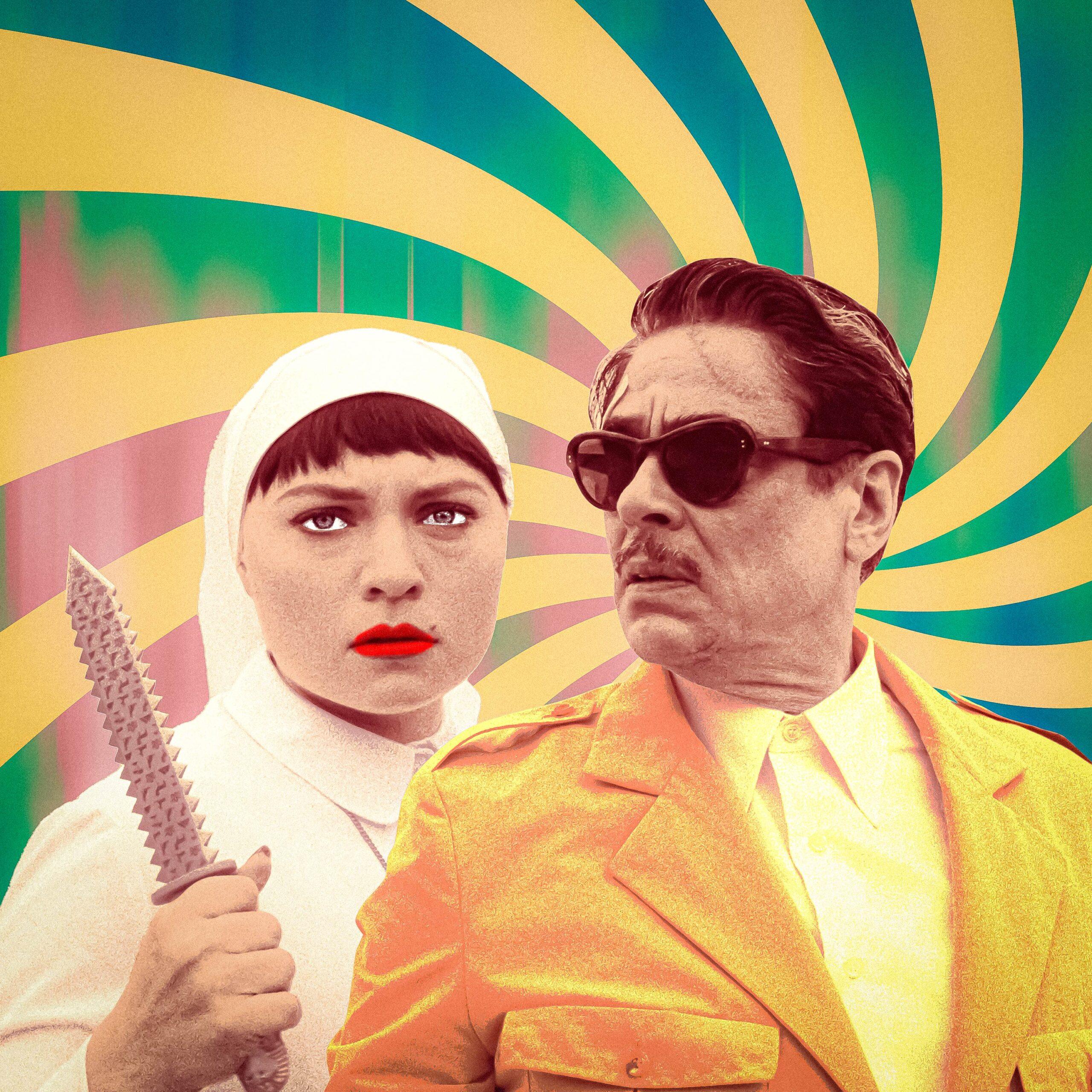 The dad’s name is Anatole “Zsa-Zsa” Korda (Benicio del Toro); the purported daughter/abbess is Liesl (Mia Threapleton). Zsa-Zsa is a friendless, seedy, philandering oligarch. Type to keep plans for orchestrated famines, outstanding slave-labor projects, and pending real-estate moves in labeled shoeboxes. Rumors abound as to whether he killed his three ex-wives; he strenuously denies ever murdering anyone “by my own hand.”