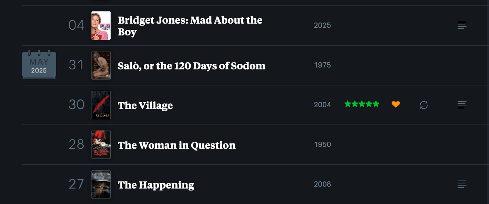 You’ll also grant me a moment to gloat about the discovery, just before New Year’s, that Charli has an account on Letterboxd, the app that’s birthed more amateur critics than every Film 101 college course in America combined. Admittedly, however, she’s a half-decent follow—she doesn’t often use the star system and only occasionally leaves an actual text review as opposed to simply hearting a film, but you have to admire the taste, like this stretch from earlier this month, when she logged these films in succession.