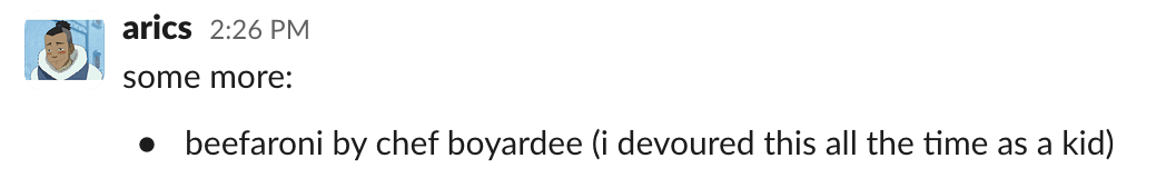 Schuster: In the words of Andrew Gruttadaro, Beefaroni is extremely “its own thing” … meaning you can probably not find a single natural material in it.