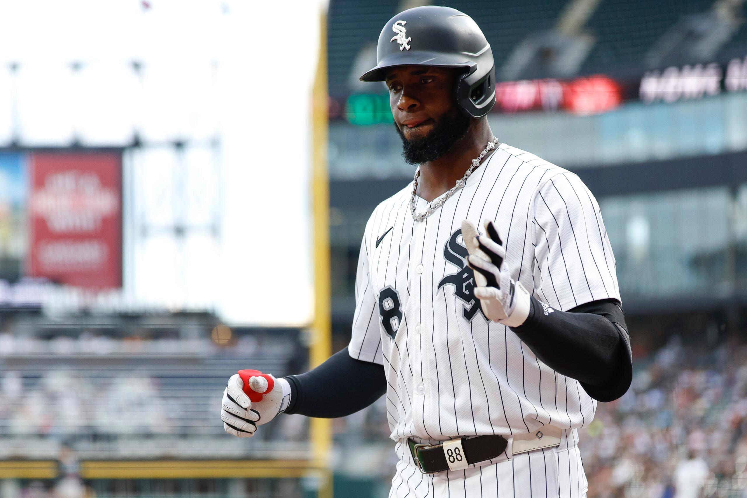 Luis Robert Jr. celebrates after hitting a solo home run against the Arizona Diamondbacks on June 24