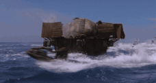 The movie’s world-building has real depth in other areas, too. Since the Mariner can breathe underwater, he takes Helen down in a makeshift diving bell to show her the submerged remains of Denver. The sequence serves a plot function—this is how the Mariner collects all his precious dirt—but it also drives home Waterworld’s environmentalist message. We might not have to worry about the Mile High City going underwater, but when island nations are buying land and building digital re-creations in the hopes of preserving their cultures for centuries to come, Waterworld’s premise doesn’t seem so far-fetched. The ecological allusions extend to the film’s portrayal of the Deacon, whose headquarters are the dilapidated remains of the Exxon Valdez—the site of a disastrous oil spill—and who aspires to reach Dryland to pillage its resources. “If there’s a river, we’ll dam it, and if there’s a tree, we’ll ram it!” the Deacon preaches to his flock.