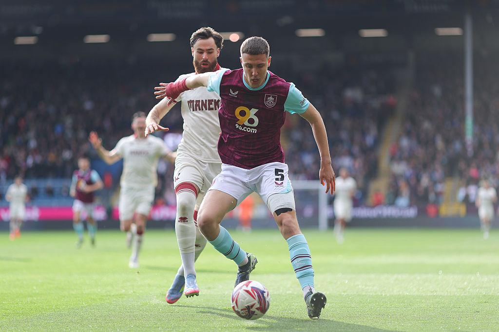 Maxime Esteve of Burnley battles for possession with Sheffield United’s Ben Brereton Diaz